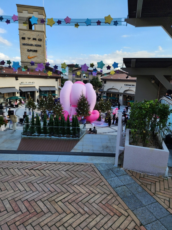 소광장에는 위시캣 아이냥 포토존이 있지만 중앙 광장에 대형 티니핑 캐릭터 벌룬이 있어서 금방 찾을 수 있었습니다. 일부러 찾지 않아도 동선 중앙에 위치해 있기에 찾기 편했는데, 중앙으로 연결되는 에스컬레이터에서도 잘 보이는 위치였습니다. 아울렛 메인 입구에서 가까워 찾기 쉽고, 안내 표지판이 하나씩 있어서 위치를 안내해 주기도 했습니다. 처음 오시는 분이나 잘 찾기 어려우신 분들은 부산 프리미엄 아울렛 홈페이지에서 위치를 찾아보시면 현재 위치에서 가는 방법도 알려주니 이용해 보시기 바랍니다.