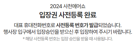 사천 에어쇼 예약 페이지에 방문하셔서 사전 등록이 가능합니다.