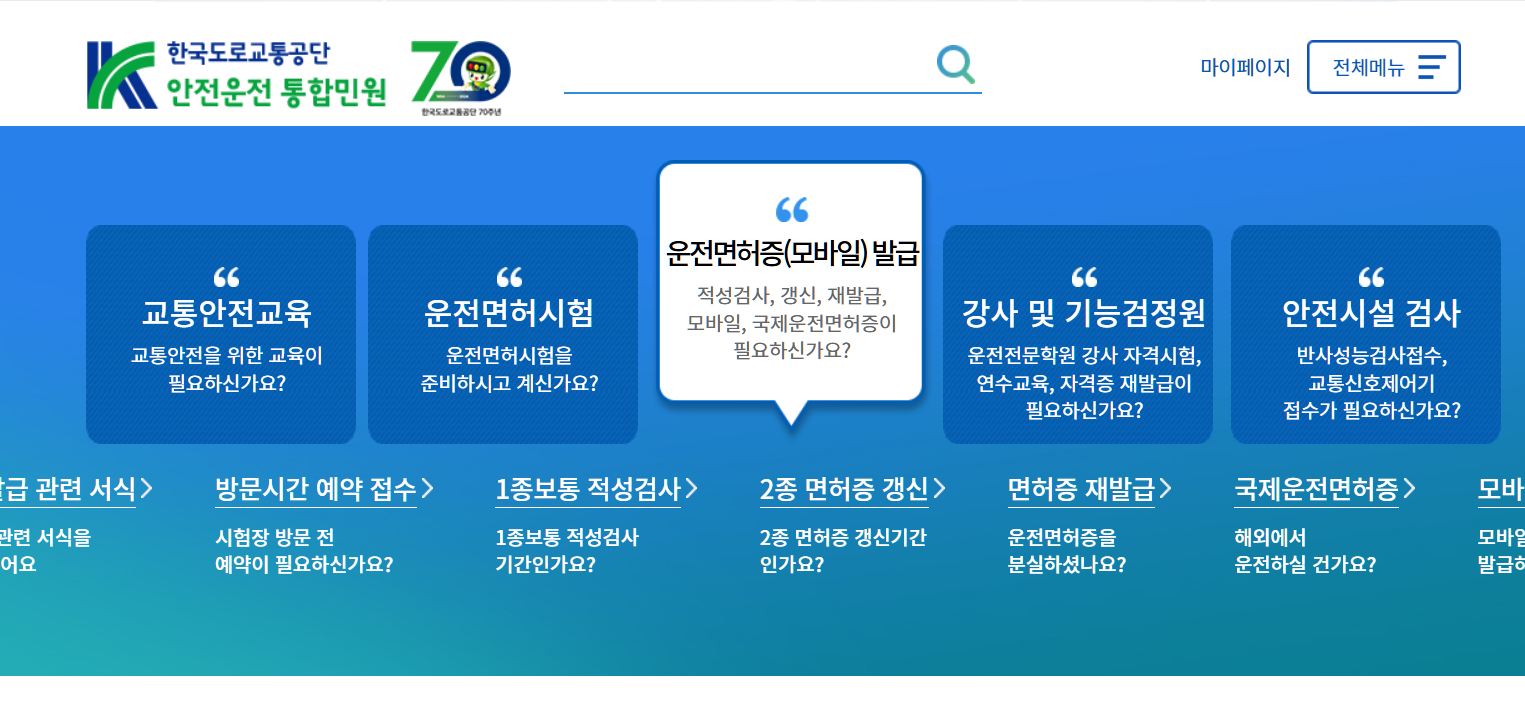 1. 한국도로교통공단 안전운전 통합민원 사이트에 접속합니다.